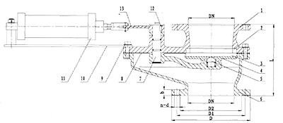 該系列閥門替代圓頂閥、翻轉閥、吊中閥、雙閘板閥門用作倉泵的進料門,也可用于礦山、化工等各類有磨損的干灰、水渣等介質的管道上作啟閉之用。使用公稱壓力1.0MPa,適應溫度≤200℃,氣源壓力0.6—0.8MPa。